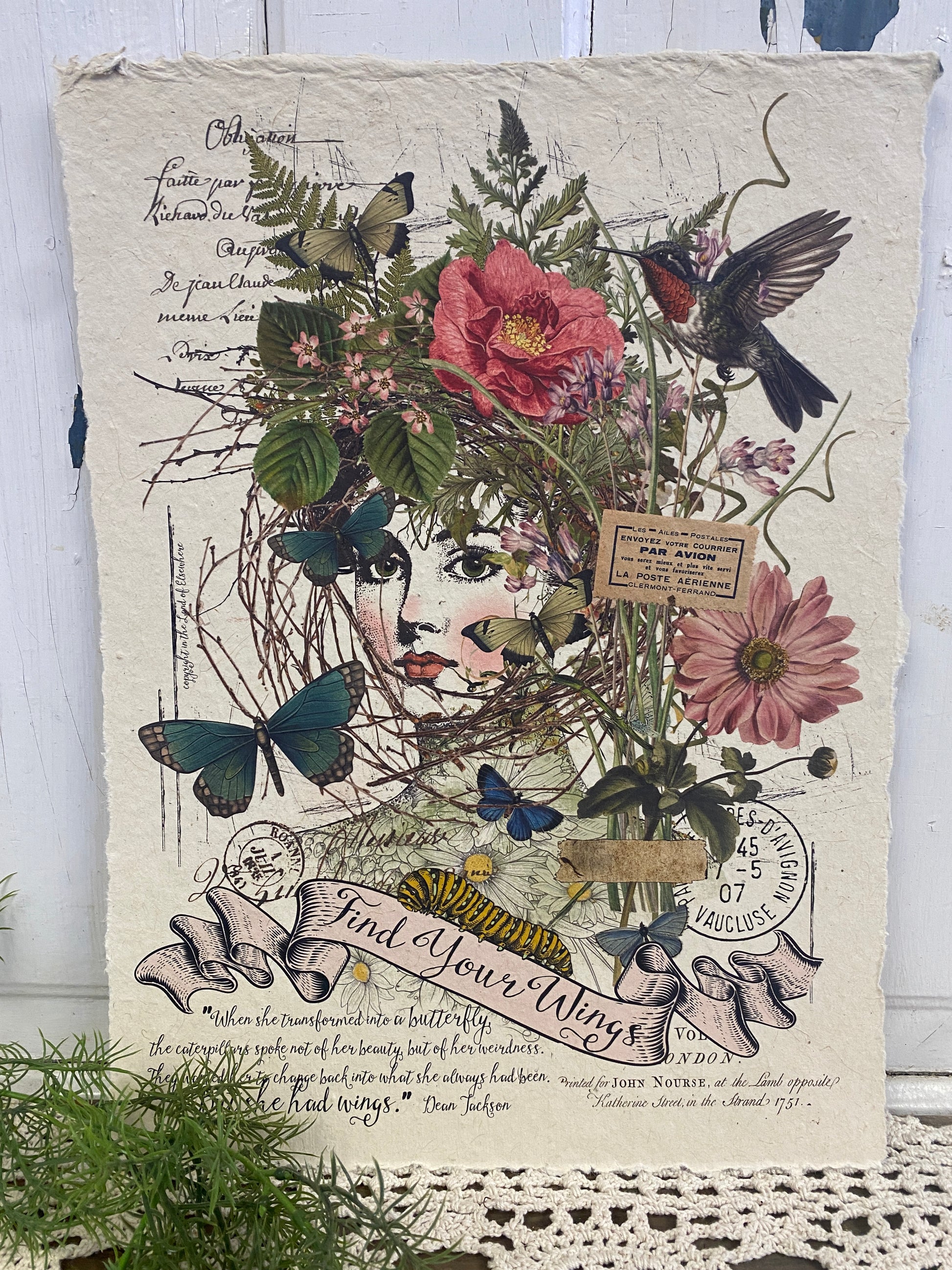 12” x 16” These unique images are a combination of artwork, photography and vintage elements to create one-of-a-kind style. Made from tree free seeded paper with hand torn edges.
