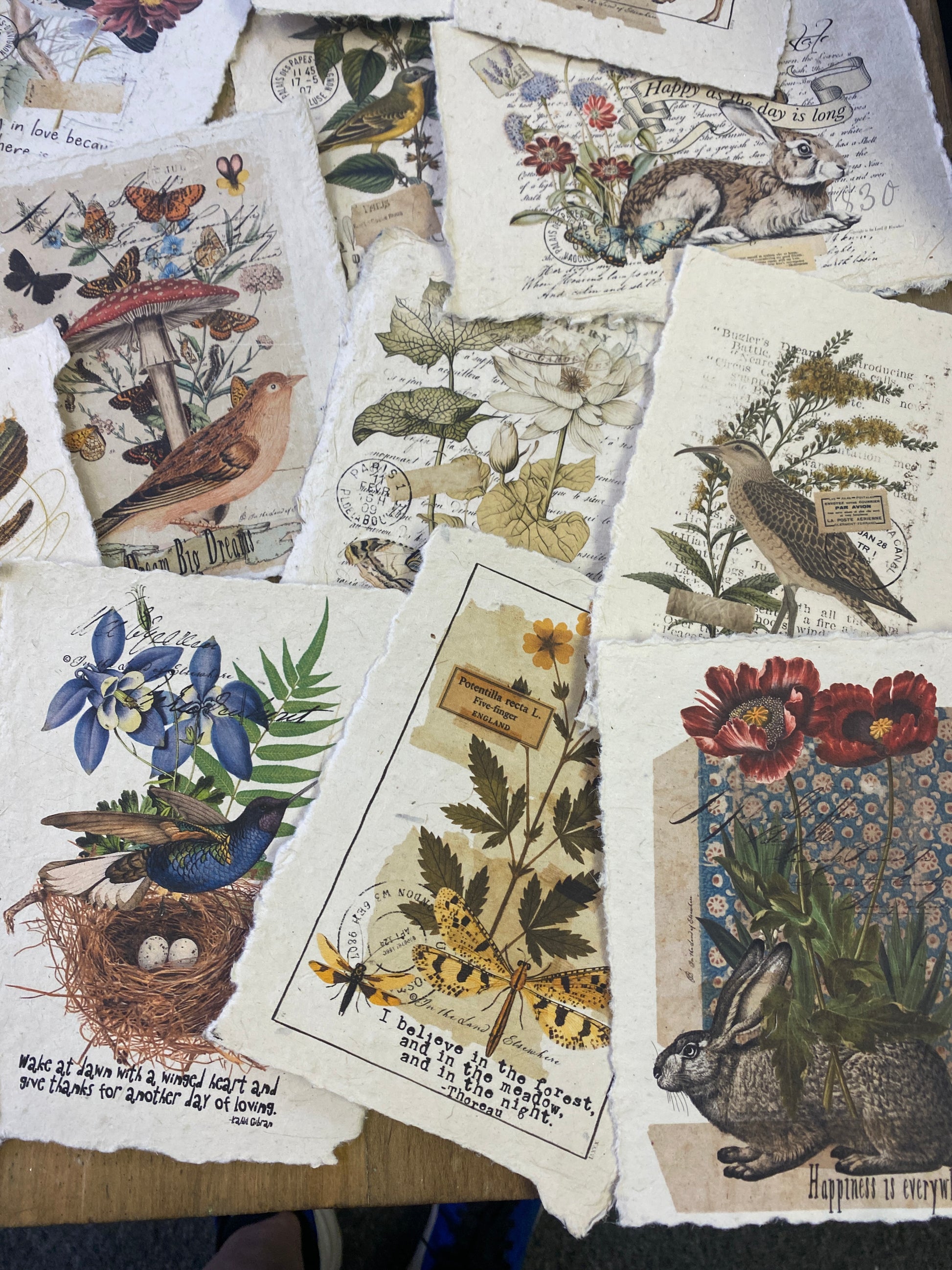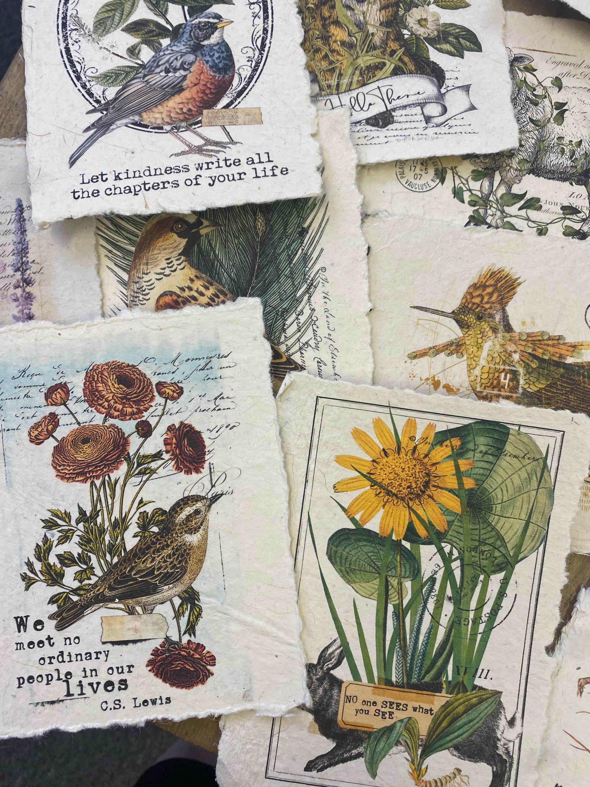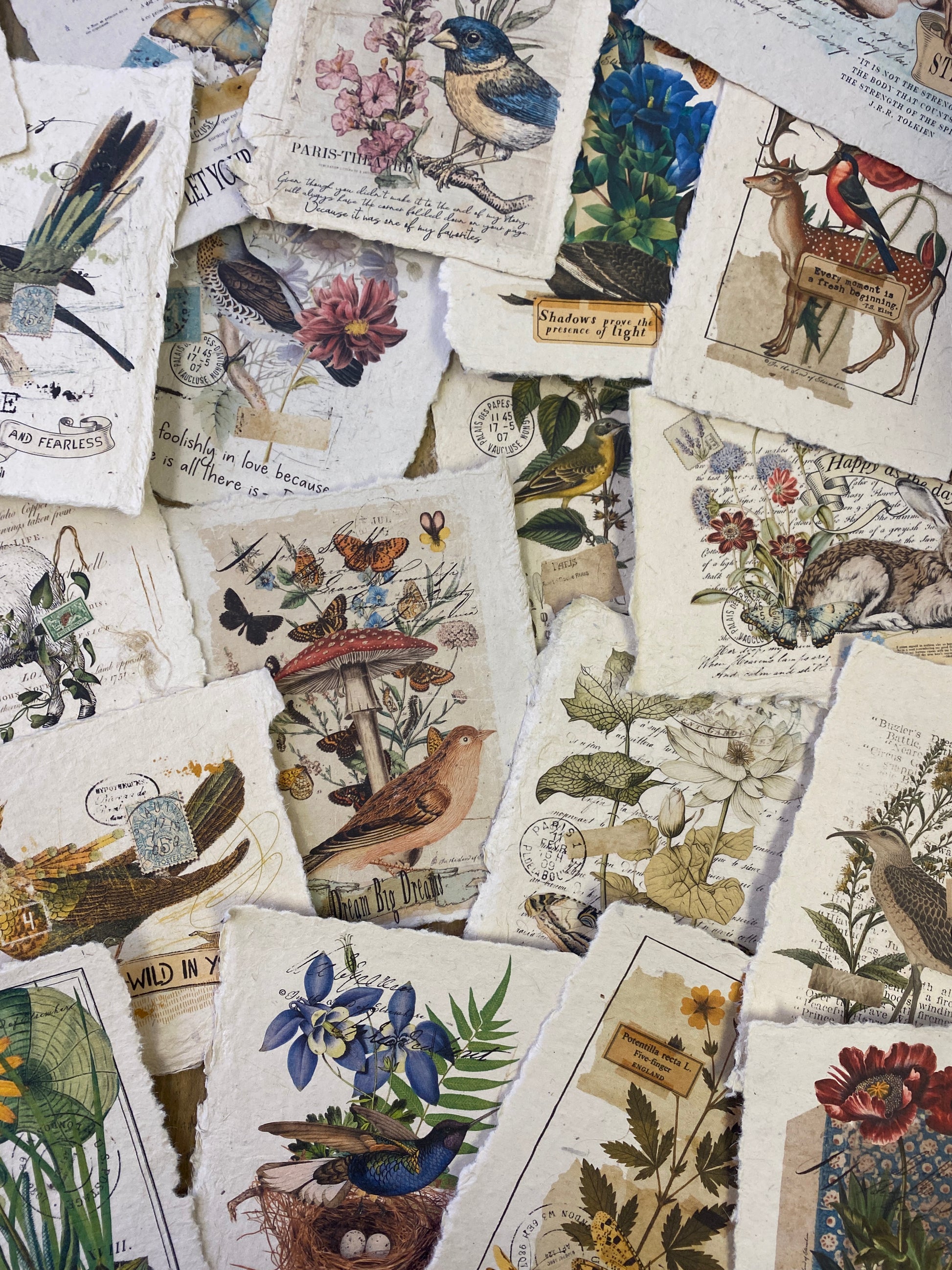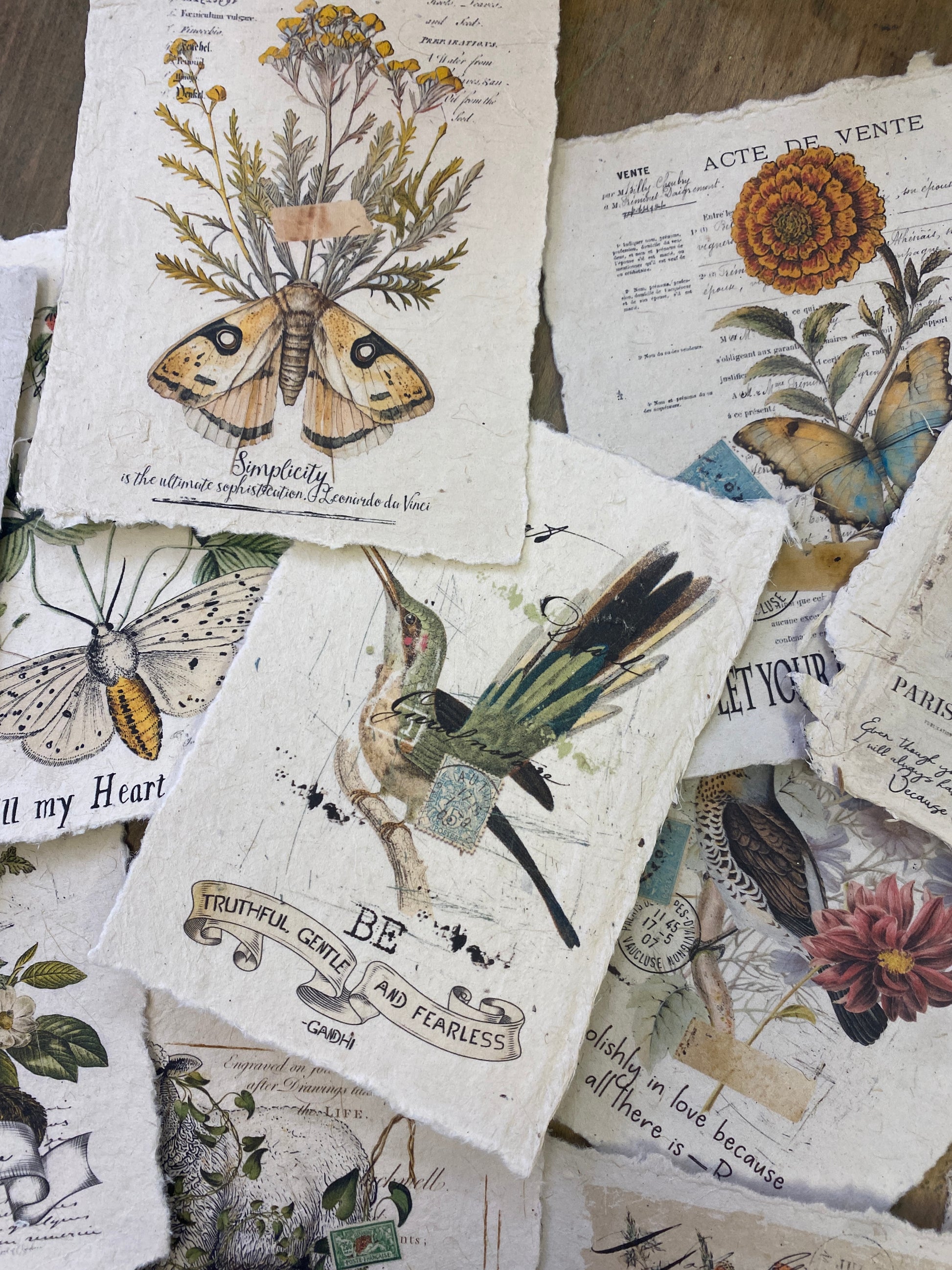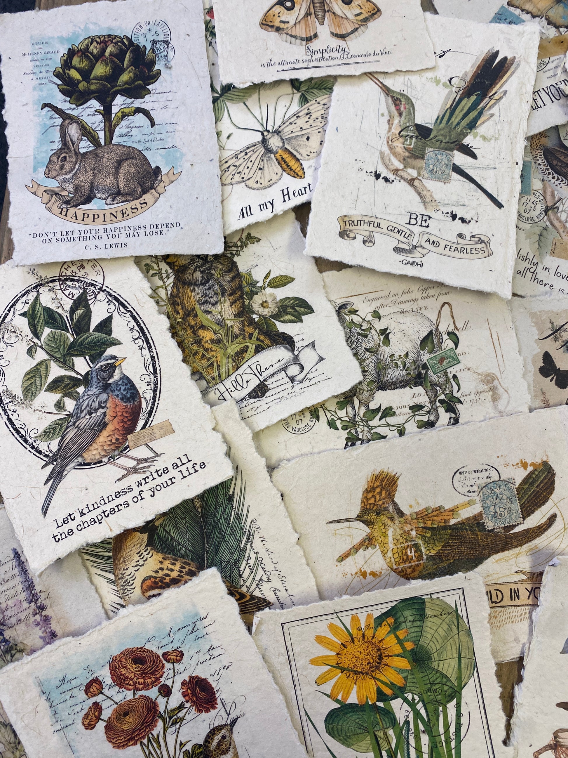 4” x 6” These unique images are a combination of artwork, photography and vintage elements to create one-of-a-kind style. Made from tree free seeded paper with hand torn edges.